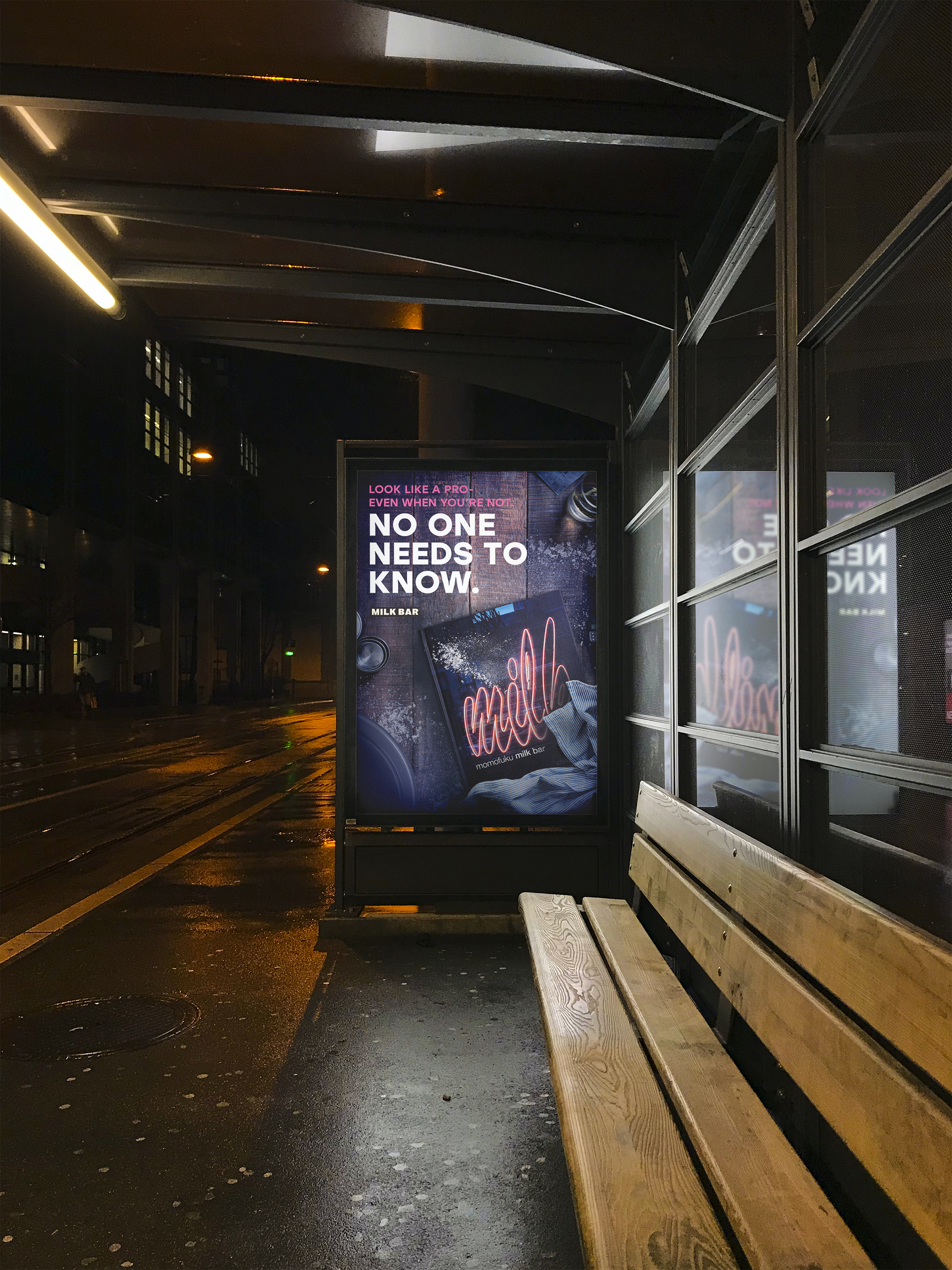Milk Bar is a bakery chain recognized online for nostalgic, sweet pastries and vibrant, fun and aesthetic branding. The goal of this project was to create conceptual advertisements for the Milk Bar company to convery a message rather than focusing on the product itself. The message being that baking for an occasion can be complicated and difficult- but with Milk Bar;s extensive options for baked goods and quick delivery, it does not have to be a hassle.